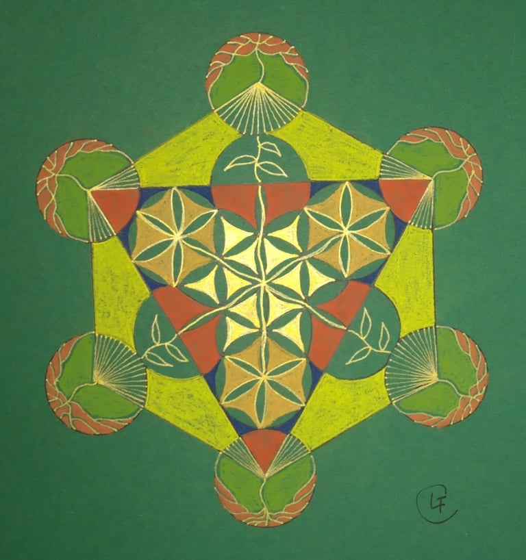 "Découverte du mandala lors d'un atelier collectif sur la graine de vie. Explications quant aux origines, le pourquoi, le comment faire et surtout des conseils pour son propre mandala. Moi assez bavarde, je n'ai pas dit mot lors de ma création, laissant aller mon imagination et mes émotions. Un vrai moment de plénitude où j'ai lâché le mental." Nadège
