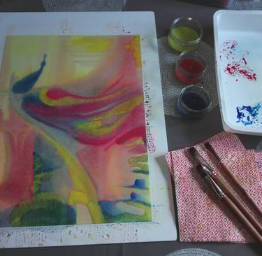 Inspirée de la méthode « Hauschka », l'aquarelle sur papier mouillé permet de révéler ce que vous portez inconsciemment en vous.