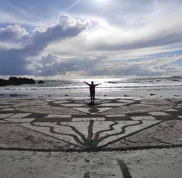 d'un traçage sur la plage (beach art)